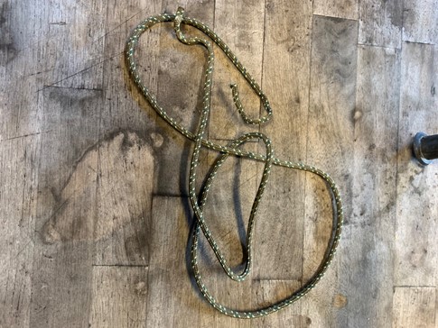 This 3 inch piece will be important when we tie our stop knot later at the last step. From here I take the working end of the rope and create the “tether” length that I want. This will take a few attempts to find what works best for you and your weapon system.