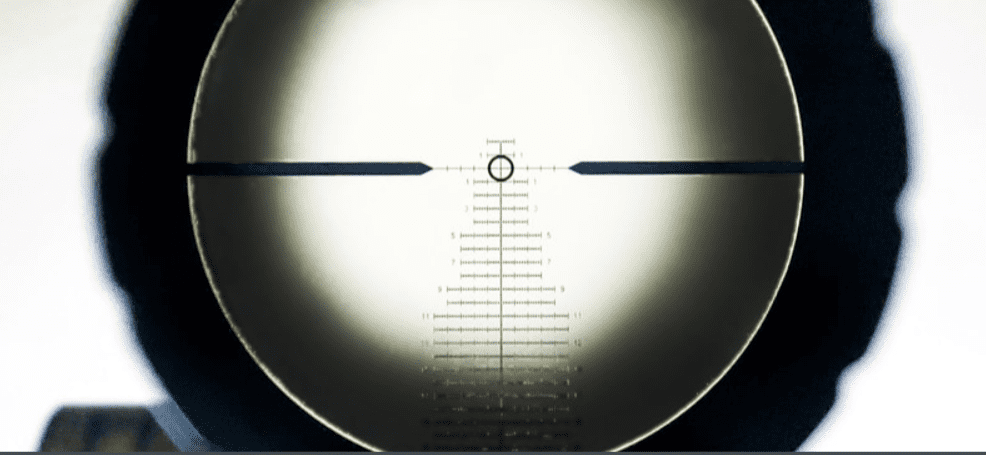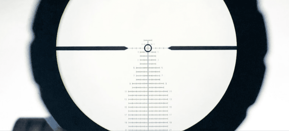 Once behind the rifle, as you slide the optic forward or back, you’ll see the shadow around the edge of the field of view grow or shrink. What we want is to have a nice clean edge all the way around the field of view. Again, you need to be at maximum magnification for optimizing this, so you’ll have the least amount of wiggle room in your optics eye box.